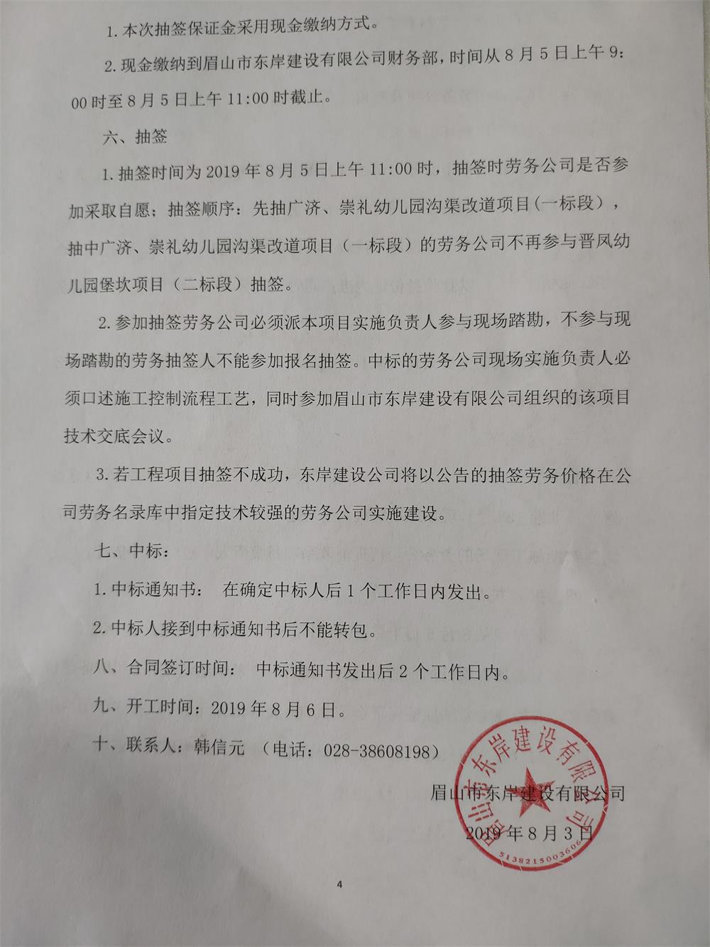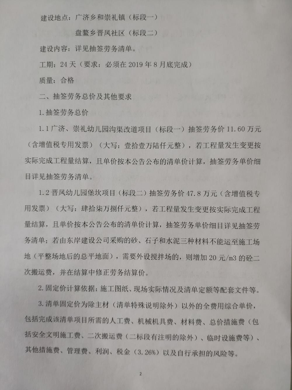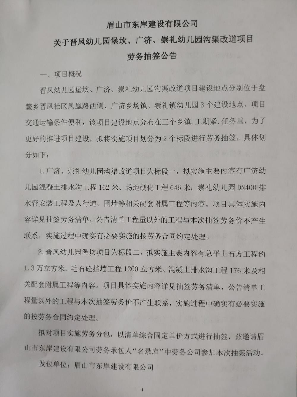 晋凤幼儿园堡坎、广济、崇礼幼儿园沟渠改道项目 劳务抽签公告