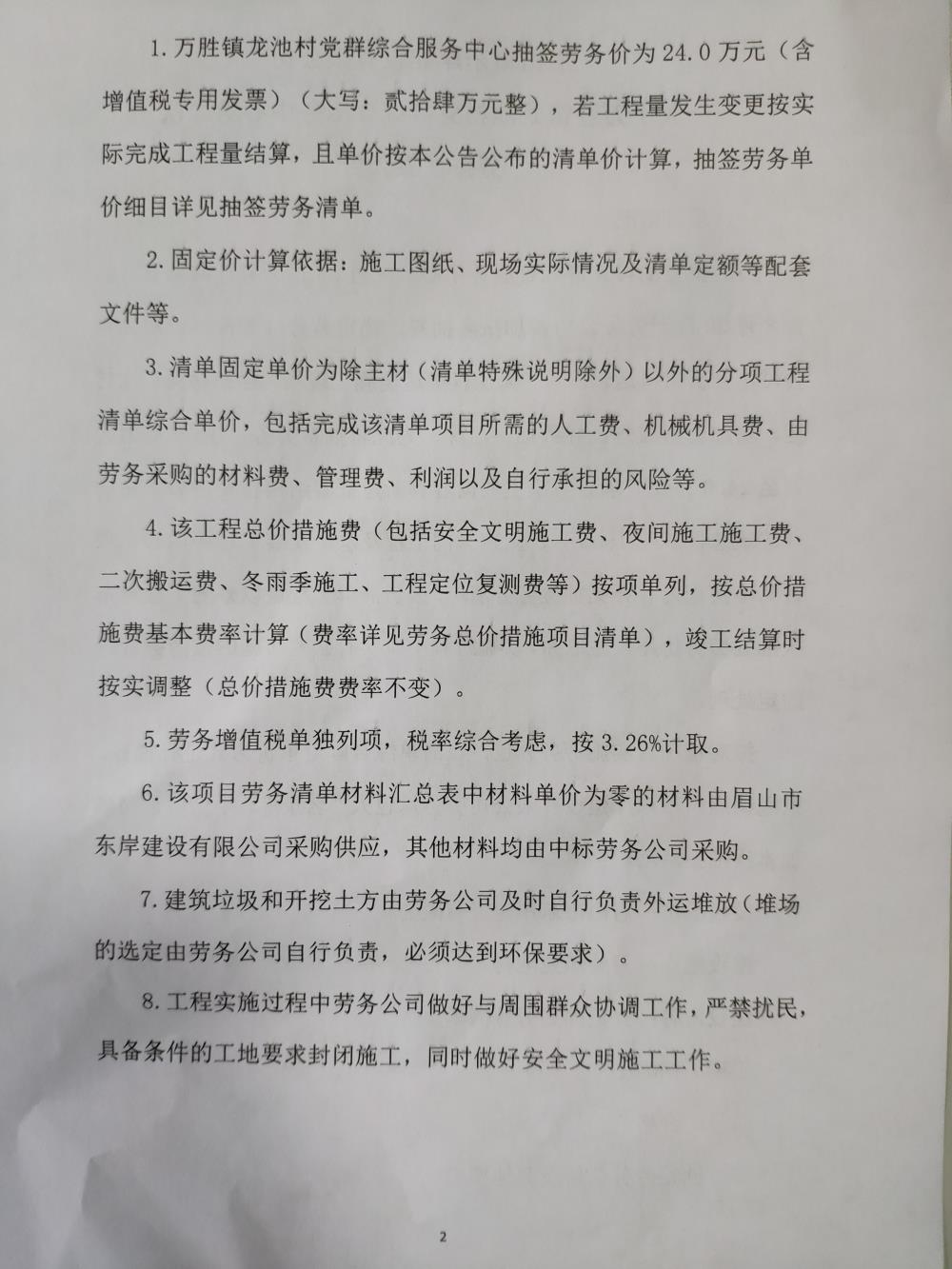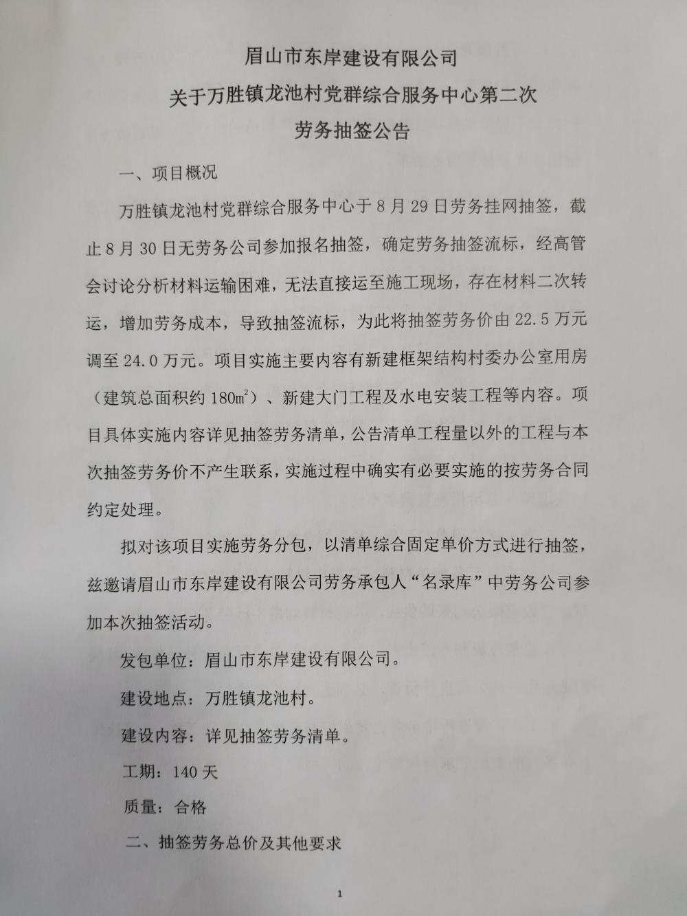 万胜镇龙池村党群综合服务中心第二次抽签公告