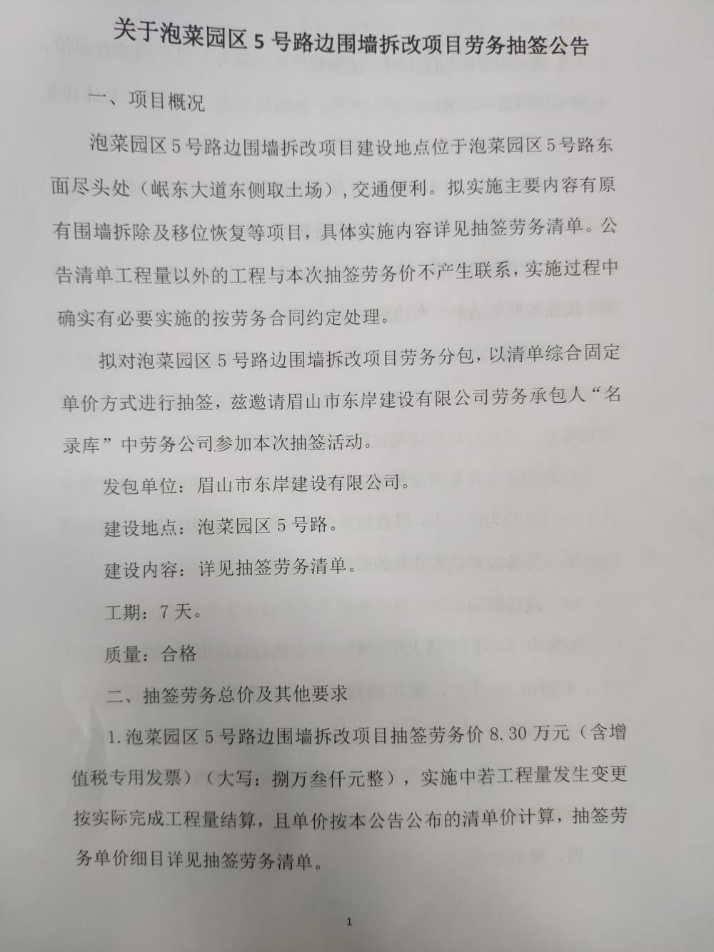 泡菜园区5号路边围墙拆改项目