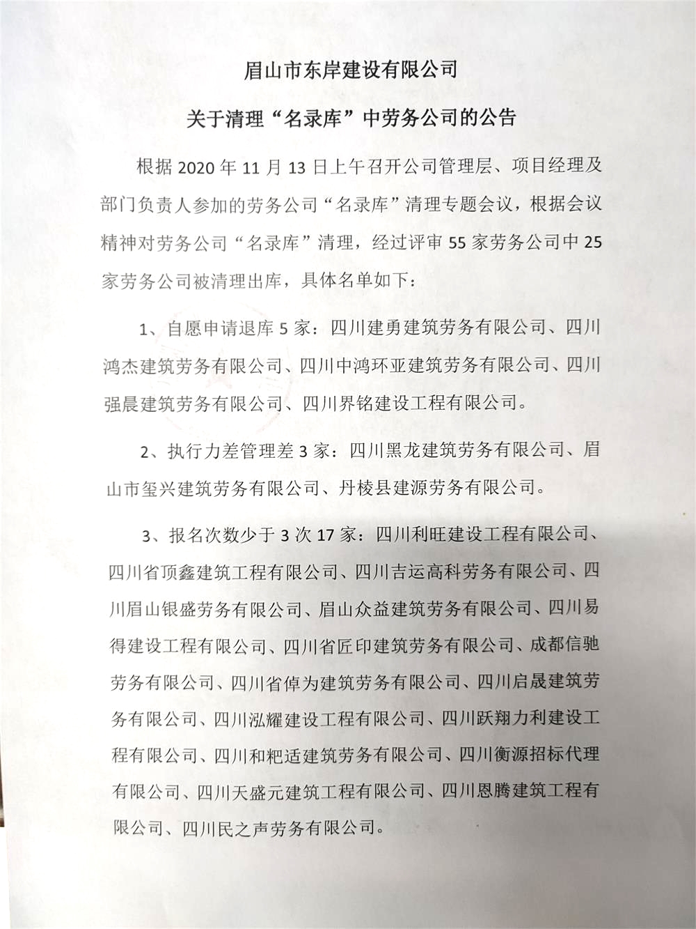 劳务清库公告