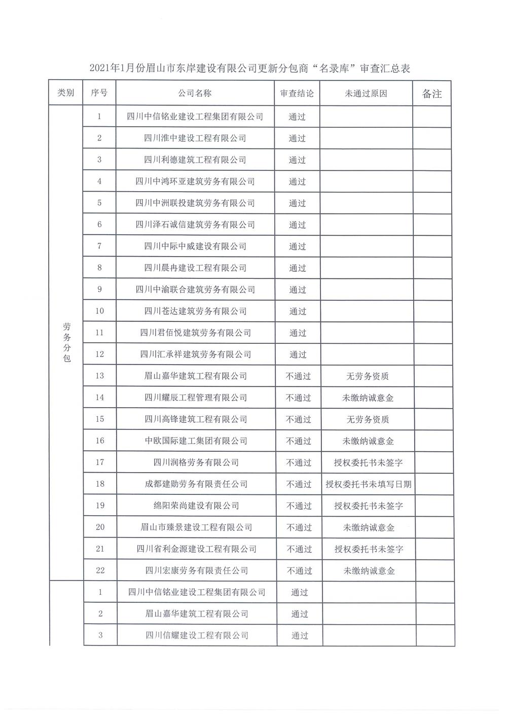 合格分包商名单