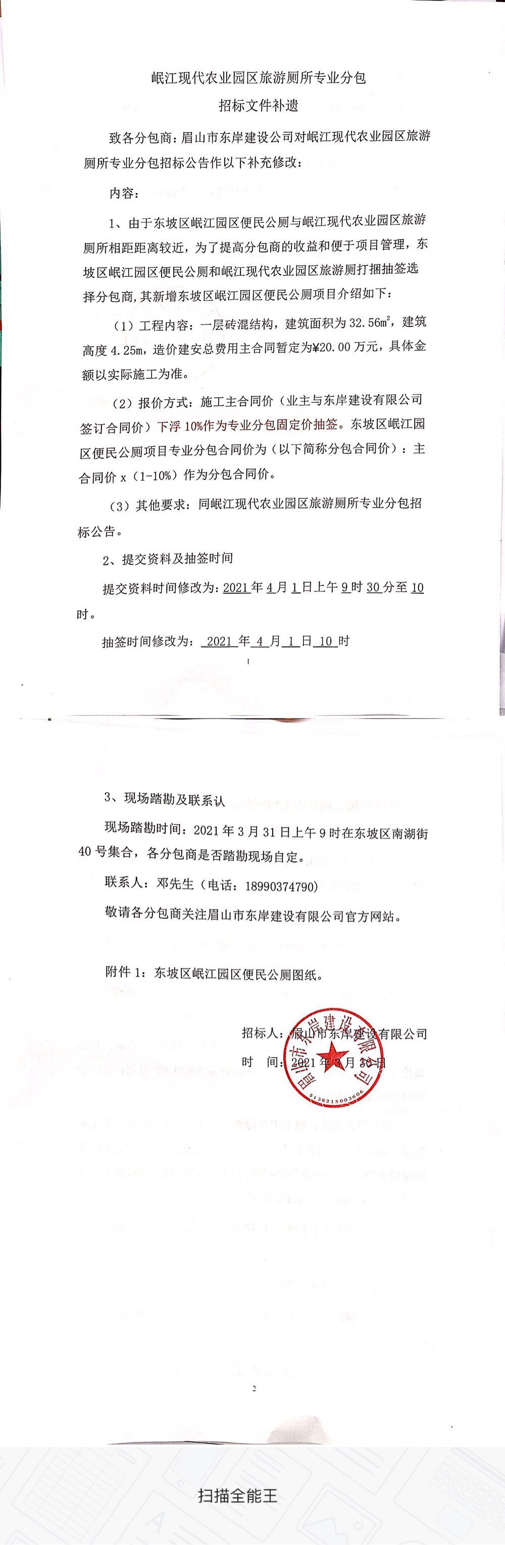 岷江现代农业园区旅游厕所专业分包更正公告(补遗)