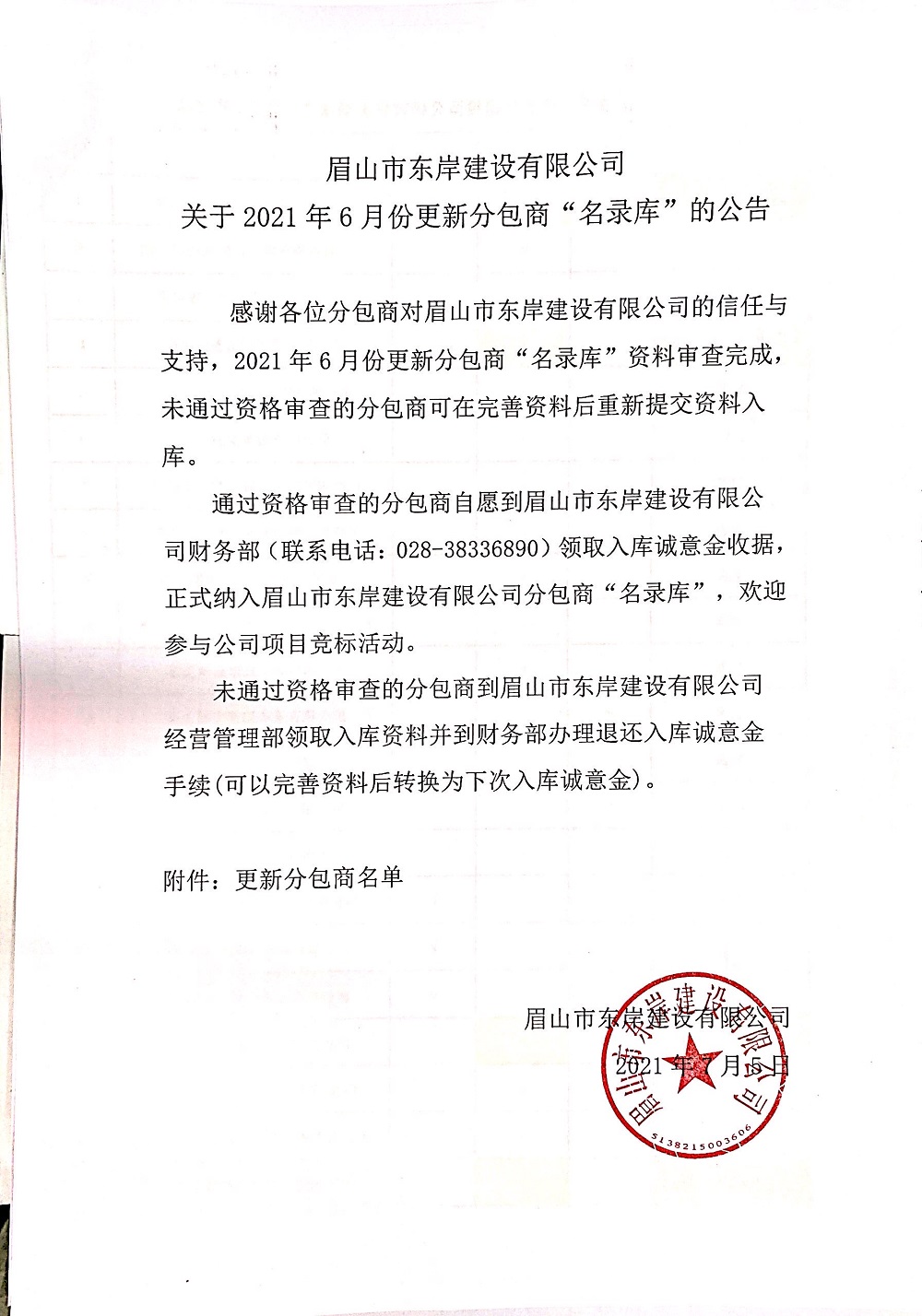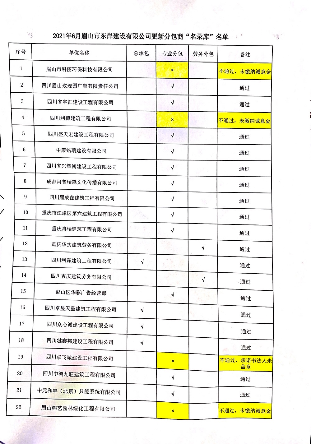 2021年6月份合格分包商名单(更新)