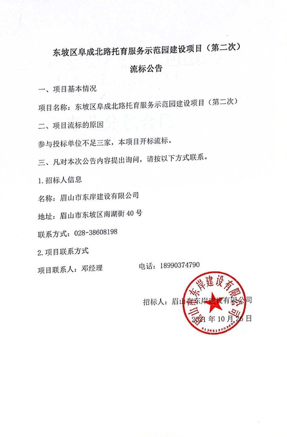 东坡区阜成北路托育服务示范园建设项目(第二次)流标公告