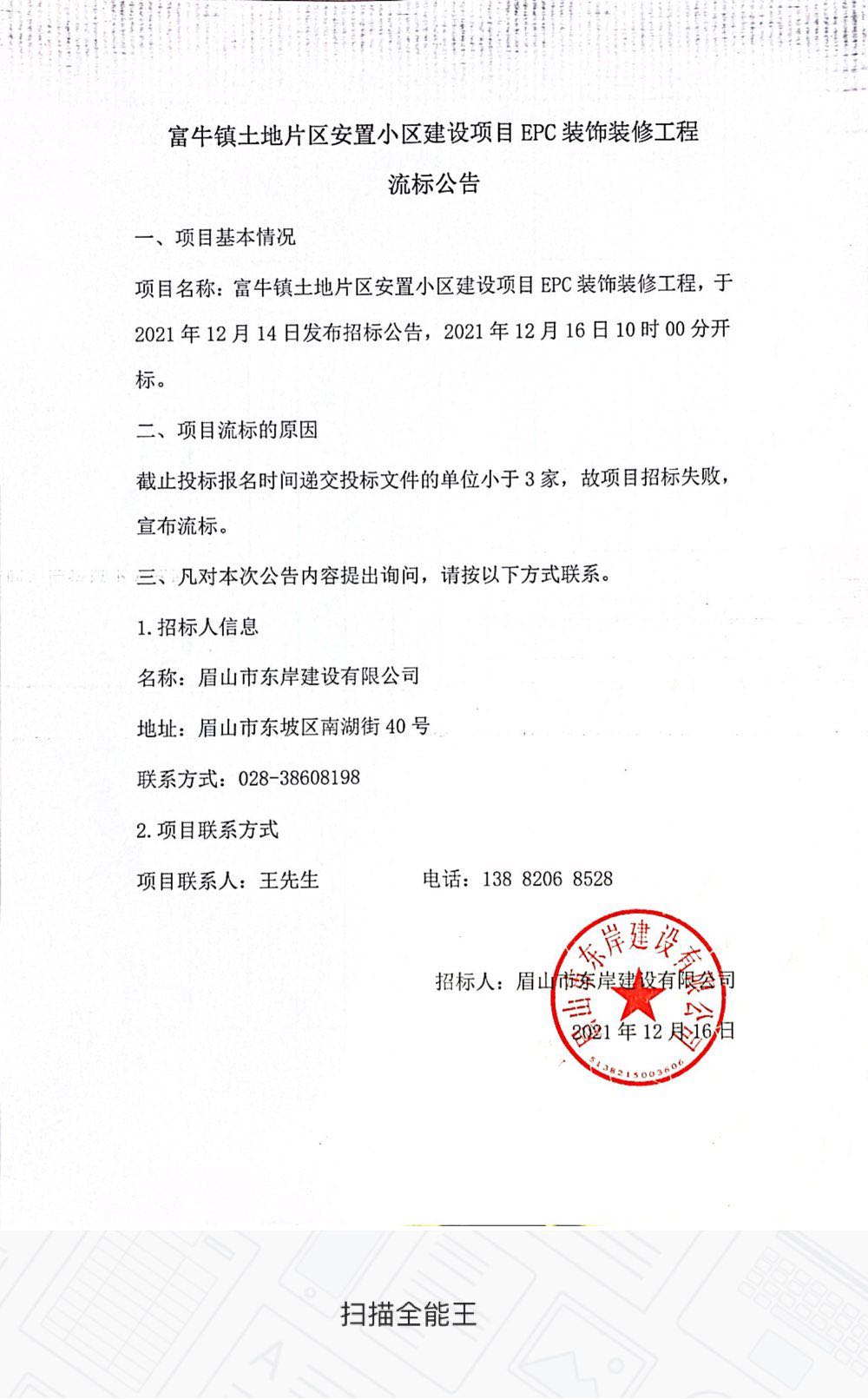 富牛镇土地片区安置小区建设项目EPC装饰装修工程流标公告
