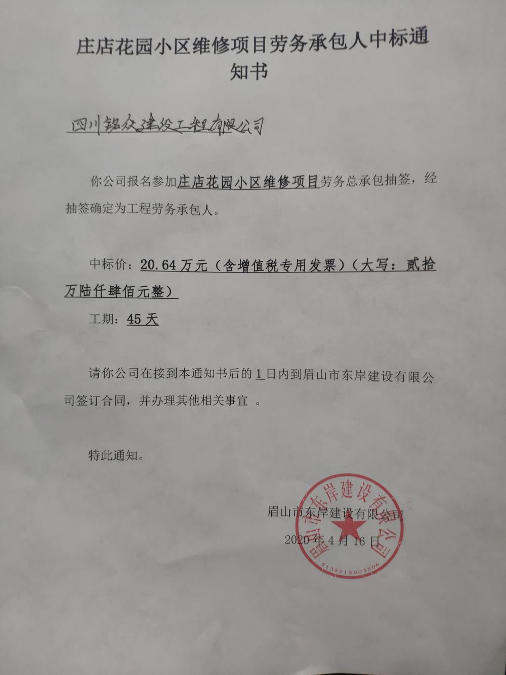 眉山市东坡区老旧小区改造(五期、六期)(EPC)(项目名称) 沥青路面标段候选人公示