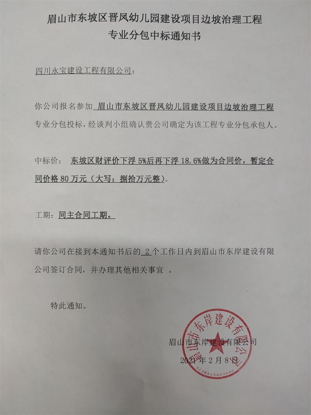 眉山市公办托育服务能力建设项目(眉山市东坡区托育综合服务中心)EPC劳务中标公示