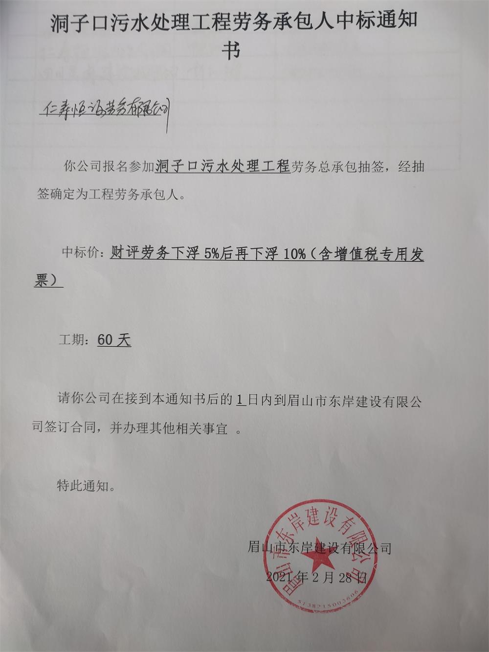 眉山经开区新区天之源和华奥便桥建设项目中标通知